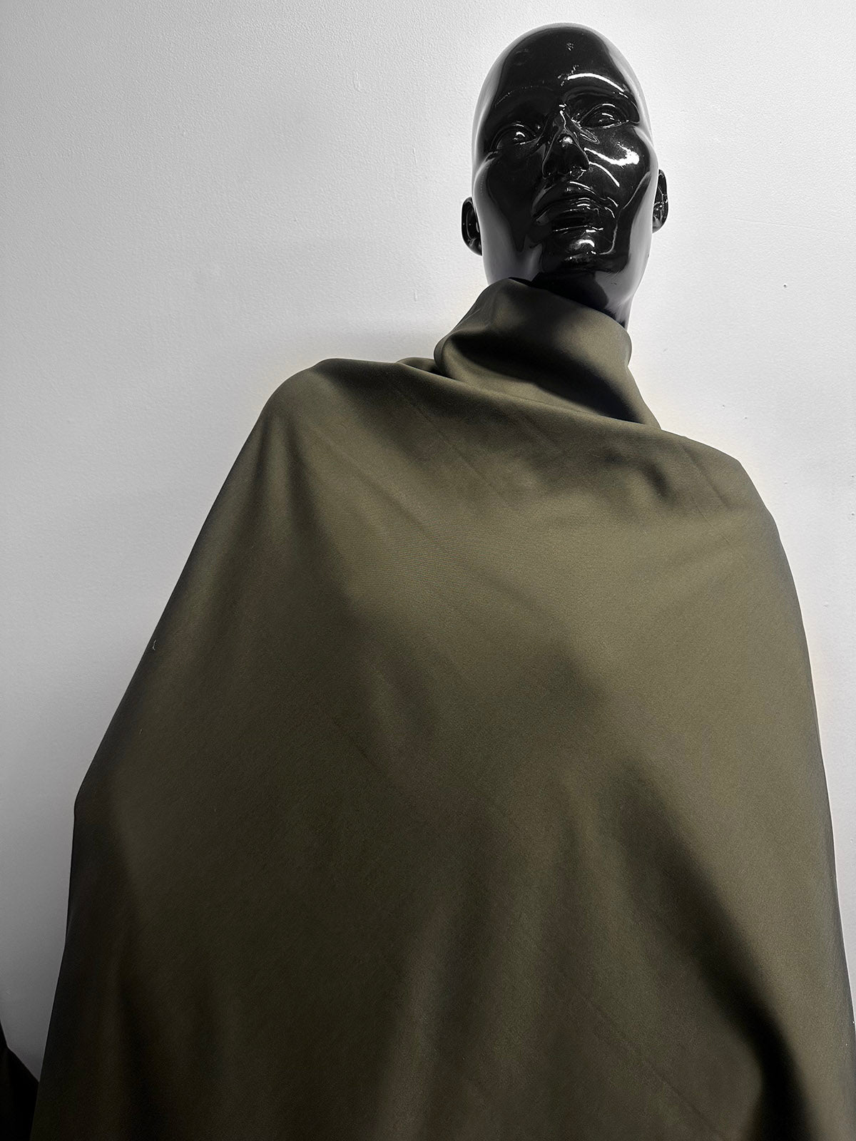 Italian rich olive green extra special brushed pant weight with a little stretch. This is beautiful cotton. Despite the lyocell this is not a drapey fabric but it is soft.